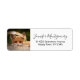 Etiquetas de endereço com uma fotografia de querido com uma pequena raposa laranja a espreitar por detrás de uma saída na natureza selvagem.