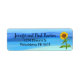 Girassol amarelo feliz, com fundo azul, etiqueta de endereço de retorno