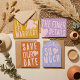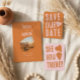 The design uses a vibrant 1970s "groovy" aesthetic, featuring a mix of burnt orange, retro pink, and lavender tones. The suite is built around bold, hand-drawn typography and playful heart motifs that give it a whimsical yet modern feel. Perfect for a contemporary wedding with a vintage twist. Design is completely customizable to fit your needs! Just click the "Edit This Design" button for more options!