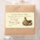 Uma ilustração do estilo cartoon de uma galinha colorida sentada num ninho e ovos, feita a partir de um cartão postal antigo. Você pode deixar o espaço de data para escrever ou mudar para a data em que seus ovos foram coletados.