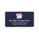 Etiquetas de endereço com uma ilustração gráfica adorável. Uma gatinha branca com uma bela imagem impressa no pelo. Dormindo em paz. Um grande coração rosa atrás dela e algumas estrelas pequenas também. Fundo azul escuro.