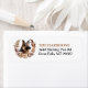 O lado esquerdo dessas etiquetas de endereço de devolução apresenta um retrato de um lindo Cão German shepherd. A imagem é fechada dentro de uma bonito coroa floral e foliar de outono em tons de marrom, bronzeado e creme. Seu texto personalizado está em preto e marrom-ouro à direita.