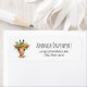 Etiquetas de endereço com uma ilustração de aquarela branca com uma face de girafa vestindo uma bonito coroa floral primavera. Colorida e fofa.