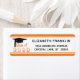 Etiquetas de endereço de retorno de graduação moderna em laranja, preto e branco com boné de formatura ou placa de mortalha e tipografia de pincel e letras de balão para o ano de aula. ASSISTÊNCIA: para obter ajuda com a modificação ou personalização do design, alteração de cor, transferência do design para outro produto ou você gostaria de coordenar itens, entre em contato com o designer ANTES DE ENCOMENDAR através da guia MENSAGEM de bate-papo Zazzle ou envie um email para makeitaboutyoustore@gmail.com.