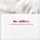 Rótulo de endereço de retorno moderno e ousado, com o nome e endereço da sua família no natal moderno, Ridido Coordenado Vermelho para a coleção de Feriados Gráficos Mínimos