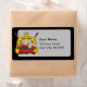 Churrasco sobre carvão inflamável, faixa de rolagem com texto personalizado sobre garfo e espátula. Cor de fundo personalizada. Custom Text.