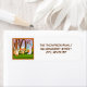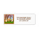 This whimsical return address label shows a cheerful turkey sharing ice cream and pie with his friends, Chipmunk and Rabbit, as they celebrate together.