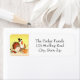 This return address label features a folk art Thanksgiving card featuring a festive turkey in a pilgrim hat, surrounded by pumpkins and autumn foliage.