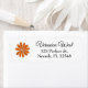 Esta design apresenta uma flor hipppy laranja com um olhar afligido