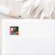 Um beija-flor veste um chapéu de Papai Noel e está pronto para pendurar a estocagem de Natal pendurada em seu bico em um alimentador vermelho. O beija-flor está dizendo, "Ho Ho Ho".