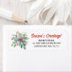 Um elegante arranjo de aquarela verde, sagrado e bagas vermelhas decora esta etiqueta de endereço de volta de Natal. Concebido para coordenar com a Fesestivo Holly e a Berry Collection.
