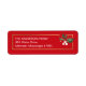 Rótulo de endereço vermelho e dourado com um punho de holly no canto.