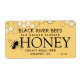 Rótulo de mel com pano metálico biselado de mel com abelha estilizada e borda pontilhada. Texto preto sobre fundo amarelo.