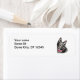 Rótulo de endereço de retorno com imagem de cão Pet Schipperke. Conhecido como "pequeno capitão" ou "pequeno capitão", um cão muito ativo, adora estar envolvido e brincar. Curioso e atento, você não pode deixar de se apaixonar por esta cara de "pequeno demônio negro".