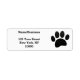 Impressão de pata de cão com couro preto falso aplicado à imagem. Etiquetas de endereço de devolução personalizadas. Tudo o que se vê é impresso, não será usado couro real ou relevo no fazer. Editar texto para tornar esses rótulos personalizados. Ideia de presente para amantes de cães. Excelente para empresas como compro de animais de estimação, marinheiros e ambulantes de cães.