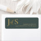 Esta suíte de casamento com seus florais exuberantes e dramáticos de branco cremoso a rosa pincelado, sotaques dourados e belos fundos de aquarela, cria uma vibração elegante e romântica, dando apenas uma dica do que os convidados podem esperar no seu grande dia. Este design de etiqueta de endereço de retorno minimalista fornece uma modelo para adicionar facilmente suas iniciais, nomes e endereços em ouro em um fundo verde espanhol. Procure ID1022 para ver todos os produtos nesta suíte de casamento.