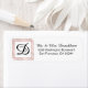 Etiquetas de endereço de retorno elegantes em letras brancas e pretas e estrutura dupla quadrada de folha de rosa de ouro. Monograma inicial alfabético. Adicione-os aos envelopes para adicionar algum toque de classe. Perfeito para qualquer ocasião; casamento, aniversário, anúncio, formatura. Modelos editáveis - adicione suas próprias informações. Encontrado na coleção "ADDRESS RETURN LABELS"