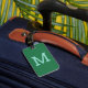 Esta etiqueta de bagagem apresenta uma única letra inicial personalizável numa fonte clássica. Faz um presente personalizado pensativo para qualquer ocasião. Um belo presente para madrinhas, padrinhos de casamento, aniversários, Dia das Mães, Dia dos Pais, graduação e muito mais. Escolha entre uma das várias opções de cores principais.