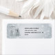 Joy Winter Trees Christmas Return Address Labels - Trendy Calliographic - Em cores azuis-prateadas, um povoado de pinheiro - parado em uma cena de neve feita em estilo bokeh - Joy escrito em caligrafia manual