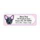 Estas adoráveis etiquetas de endereço de cabeçalho azul têm um fundo de verificação cor-de-rosa. Um desenho animado australiano Cattle Dog está à direita, e você pode personalizar instantaneamente o nome e endereço encontrados à direita. Produtos muito bonitos para amantes de animais de estimação em Menagerie Mayhem.