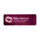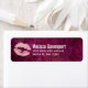Etiquetas de endereço com lábios de faux-glitter cor-de-rosa moderna. O fundo é um padrão cor-de-rosa avermelhado escuro com folhas tropicais de palma.