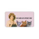 Linda senhora com etiqueta de endereço de retorno de gatos