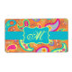 Etiqueta Laranja Turquesa Moderna Paisley Pattern Monograma