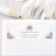 Etiquetas de endereço de retorno com o tema Princesa, com flores roxas a aquarelas e uma coroa de ouro fofinha