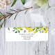 Esta é uma etiqueta brilhante e de limão de verão, chamada de endereço de retorno do casamento. A design mostra um galho de um limoeiro, suas flores brancas, folhas verdes e borboletas doces flutuantes. Entre em contato com o designer para verificar se há variações neste design ou se há produtos correspondentes.