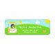 Este rótulo de endereço bonito e caprichoso apresenta uma cabeleira preta com pele clara num suporte de limonada amarela que é decorado com flores e beliche. Ao fundo está um céu azul, sol e borboletas. O texto combina fontes decorativas e sans serif para um aspecto na moda e moderno. Isto é perfeito para uma festa de aniversário de verão. Gráficos de MUJKA
