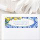 Etiqueta de endereço de devolução de azulejo azul italiano floral de limões aquarela.