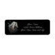 Um cavalo com uma noiva de penas e penas no seu homem. Uma etiqueta de endereço de retorno bonito e funcional. Faz um presente excelente também!