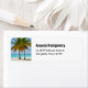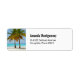Etiquetas de endereço com uma bela e tranquila fotografia de duas palmeiras sob um céu azul brilhante. Em pé numa praia tropical isolada com água turquesa calma.