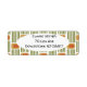 Estas etiquetas de endereço de retorno têm uma design moderna do século médio feita de cinco linhas verdes e um retângulo dourado arredondado com um retângulo laranja arredondado repetido na design.