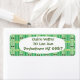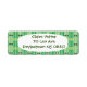 Essas etiquetas de endereço de retorno têm uma design de médio de século de linhas verdes verticais com retângulos acima, repetidas sobre a design.