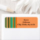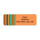Estas etiquetas de endereço de retorno têm uma design de listras Bauhaus em tons de laranja e lacre.