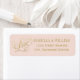 Adicione cor e estilo ao seu anúncio de casamento e envelopes de convite com estas etiquetas de endereço de retorno de casamento elegantes e de "Amor". Design inclui "Love" em um roteiro de caligrafia elegante e endereço de retorno personalizado. Pavimento cor-de-rosa pincelado (pode ser personalizado) e cores douradas.