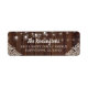 A corda de madeira russa acende etiquetas de endereço de retorno de renda apresentando um fundo de madeira rústico com cordas cintilantes de luzes e rendas de estilo vintage nos cantos inferiores.