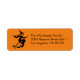 Rótulos de endereço de retorno de Halloween, bruxa voadora e bonita. Texto preto totalmente personalizável, bruxa negra sobre fundo laranja. Design moderno de diversão. Excelente de enviar presentes, favores e correspondência para o Halloween. Verifique o resto da coleção para coordenar e combinar itens e outros suprimentos e decorações da parte.