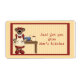 Um rótulo bonito para adicionar às suas guloseimas caseiras mostra um urso de mamã na cozinha com artigos de panificação em fundo listrado amarelo e borda vermelha de celeiro. Criado com gráficos por http://www.countrylifegraphics.com
