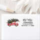 Manuscrito de Natal, Sr. e Sra. Red Truck. Rótulo perfeito para os recém-casados. A etiqueta de retorno do retângulo contém um script de pincel de assinatura e um caminhão vermelho de coloração d'água pintado com pintura manual. A cor das fontes e da fonte pode ser personalizada. Encomendas personalizadas estão disponíveis em truullc@gmail.com.