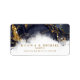 Um fundo abstrato que lembra o mármore em tons de azul marinho veinado com ouro reluzente é o pano de fundo para textos elegantes e layouts modernos de design nos pedaços desta bela suíte de casamento. A etiqueta de endereço de casamento mostrada aqui mostra o acima mais uma modelo para adicionar os nomes da noiva e do noivo e o endereço de casamento. Procure ID644 para ver todas as peças de coordenação neste conjunto.
