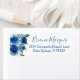 Etiquetas de endereço de retorno floral de chá de panela azul-d-água marinho.
