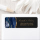 A borda esquerda desta elegante e moderna etiqueta de endereço de retorno de convite de casamento apresenta uma marinho azul de aquarela agata borda aparada com falso brilho dourado. O texto personalizável combina manuscrito dourado e fontes de impressão em um fundo de cinza de carvão escuro.
