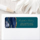 A borda esquerda desta elegante e moderna etiqueta de endereço de retorno de convite de casamento apresenta uma marinho azul de aquarela agata borda aparada com falso brilho dourado. O texto personalizável combina letras douradas e fontes de impressão coloridas sobre um plano de fundo.