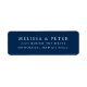 Nossas etiquetas de endereço de retorno elegantes e eternos apresentam um rico fundo azul marinho com letras brancas clássicas.