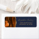 A borda esquerda desta elegante e moderna etiqueta de endereço de retorno de convite de casamento apresenta uma borda de cor de água laranja queimada, aparada com falsa brilho dourado. O texto personalizável combina letras douradas e fontes de impressão coloridas em um fundo azul escuro de marinho.