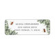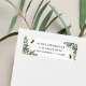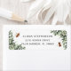 Projetado para combinar com nossa coleção de papelaria para eventos temáticos de abelhas Mel de Flor de Laranjeira, este design de endereço de devolução doce e inspirado na natureza apresenta folhagem botânica de aquarela verde, flores brancas e abelhas melíferas zumbindo. Personalize com seu endereço de devolução.