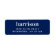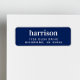 Etiqueta de endereço de retorno azul de marinho com seu nome de família monograma em grande e moderna tipografia branca.