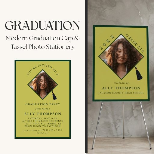 Announce your senior's graduation party with this Modern Green Graduation Cap Tassel Label! This design features a fun tassel and modern typography. Easily customize the details with Zazzle's design tool! Have a custom request? Message me!